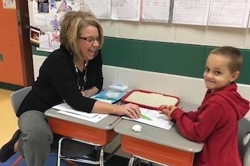Schreiber participates in Ohio’s Early Literacy Pilot, supported through the SSIP. It receives support from in-district literacy coach Melissa Butler (pictured with Bouie above) and a Regional Early Literacy Specialist. All Schreiber teachers received intensive professional learning in literacy using Language Essentials for Teachers of Reading and Spelling (LETRS)2, and Principal Bouie is participating in Ohio’s SPDG. “I remember two years ago when we started the work as a district, our lack of strong core instruction was a hard pill to swallow. Now, when we look at our data, we can say that even though we’re still not where we need to be, every single one of our students improved because of very specific intervention tied directly to their needs,” reflected Bouie.