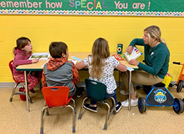 Dever welcomes SSU tutors to attend TBT, BLT, and DLT meetings and tutors have additional opportunities to “observe teacher meetings, attend an all-staff meeting, and work directly with a speech-language pathologist,” said Link. Fostering the kind of peer-to-peer learning that TBTs support is also facilitated through the tutoring sessions. “I didn’t realize how much students will really learn from each other. They’ll hear another student say a word they were unsure of and they’re able to pick it up because one of their peers said it,” explained Link. “Just hearing it in a different way or hearing it from their peers makes it stick a lot better!” added Van Bibber.