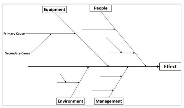 Imagining the use of the Ishikawa diagram in Figure 1, one sees that this technique can get complicated fast. Each contributing category of influence (in this case, equipment, people, environment, and management) can be subdivided endlessly. That process would not be helpful for many leadership teams, because endless complexity is more likely to obscure than to clarify the kinds of problems that educators face.